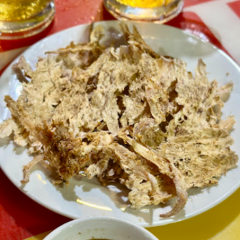 Camilan khas berupa cumi-cumi kering yang dipanggang dan dipipihkan, biasanya disajikan dengan sambal.